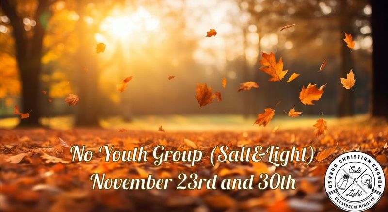 Salt and Light Student Ministries will not meet on Nov. 23 and 30th. Happy Thanksgiving!